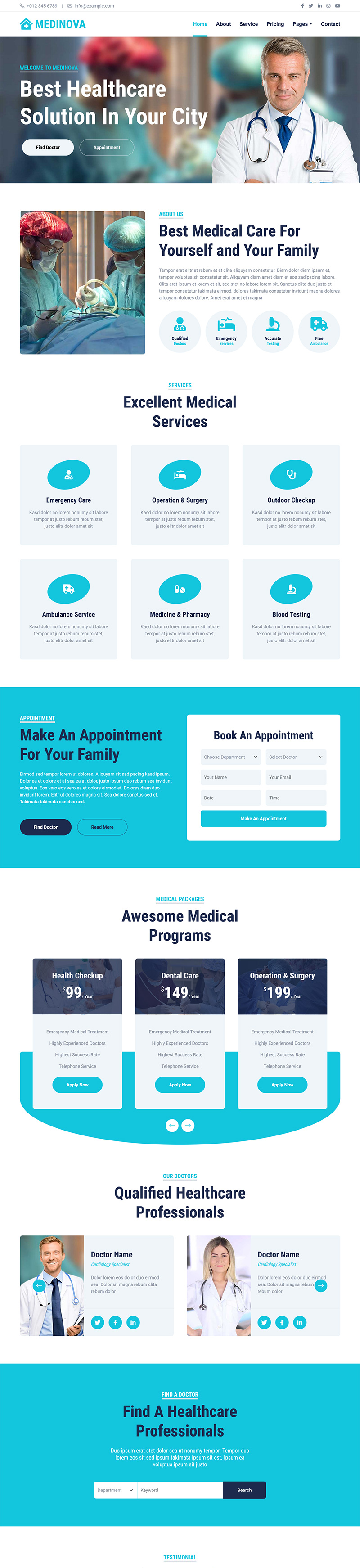 • 这是一款医疗护理保健方案的html模板,在当今社会中,健康已经成为人们越来越关注的问题。为了更好地满足人们对医疗护理保健的需求,以便更好地为用户提供专业的医疗护理方案。该模板的设计风格简洁大方,采用了医疗行业常用的蓝白色调,整体感觉非常专业。同时,网页中添加了大量的图片和图表,以便更好地展示医疗护理保健方案的内容和特点。此外,还为用户提供了多种交互方式,包括在线预约、咨询等,以便更好地满足不同用户的需求。该模板通过不断的优化和改进,页面的加载速度更快,功能更加完善。这是一款优秀的医疗html模板