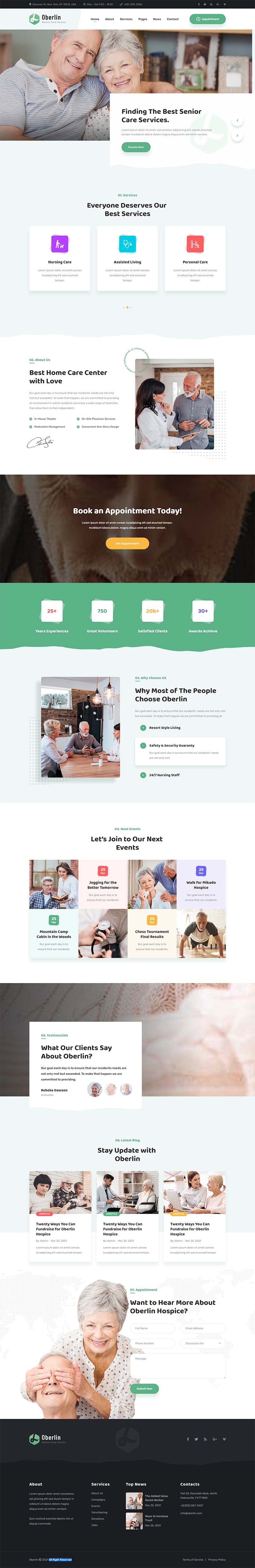 • 这是一款专为养老院和护理院设计的HTML模板,它提供了完整的页面,包括首页、服务介绍、团队介绍、新闻资讯、联系我们等页面。该模板设计简洁大方,色彩温馨,符合养老院和护理院的特点。同时,该模板还支持响应式布局,可以适应不同的屏幕尺寸,方便老年人和家属在不同设备上访问。此外,该模板还提供了在线预约和留言功能,方便用户与养老院和护理院进行沟通。总之,这是一款功能齐全、美观大方的养老院和护理院HTML模板,适合各类养老院和护理院使用。