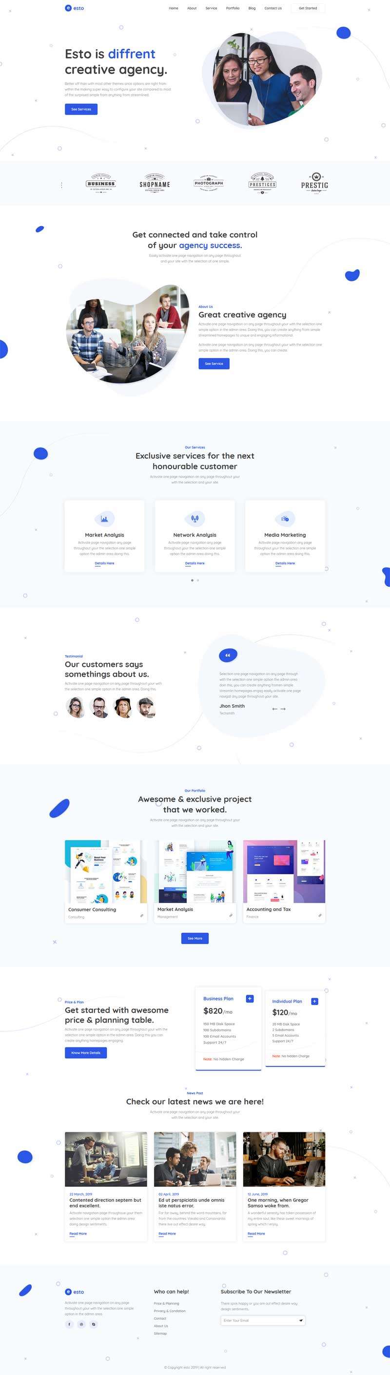适用于市场营销企业推广策划公司网站模板,界面创新简洁好看,可以用浏览器翻译成中文。