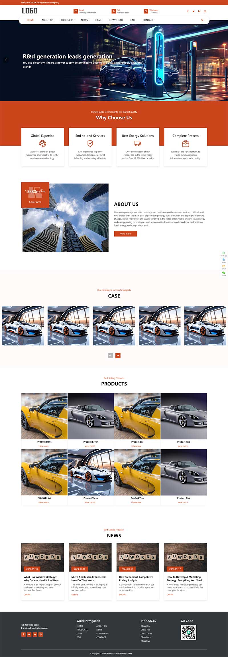 本模板采用PbootCMS内核开发,专为外贸及汽车配件行业设计,同时适用于多种其他行业。通过简单的文字和图片替换,即可轻松定制为不同领域的专业网站。