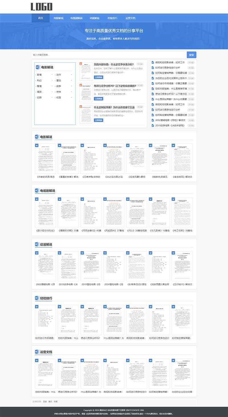 PbootCMS内核开发的网站模板,该模板适用于电影解说文案网站、word资源网站等企业,也可以改成其他行业,只需要把文字图片换成掉即可;